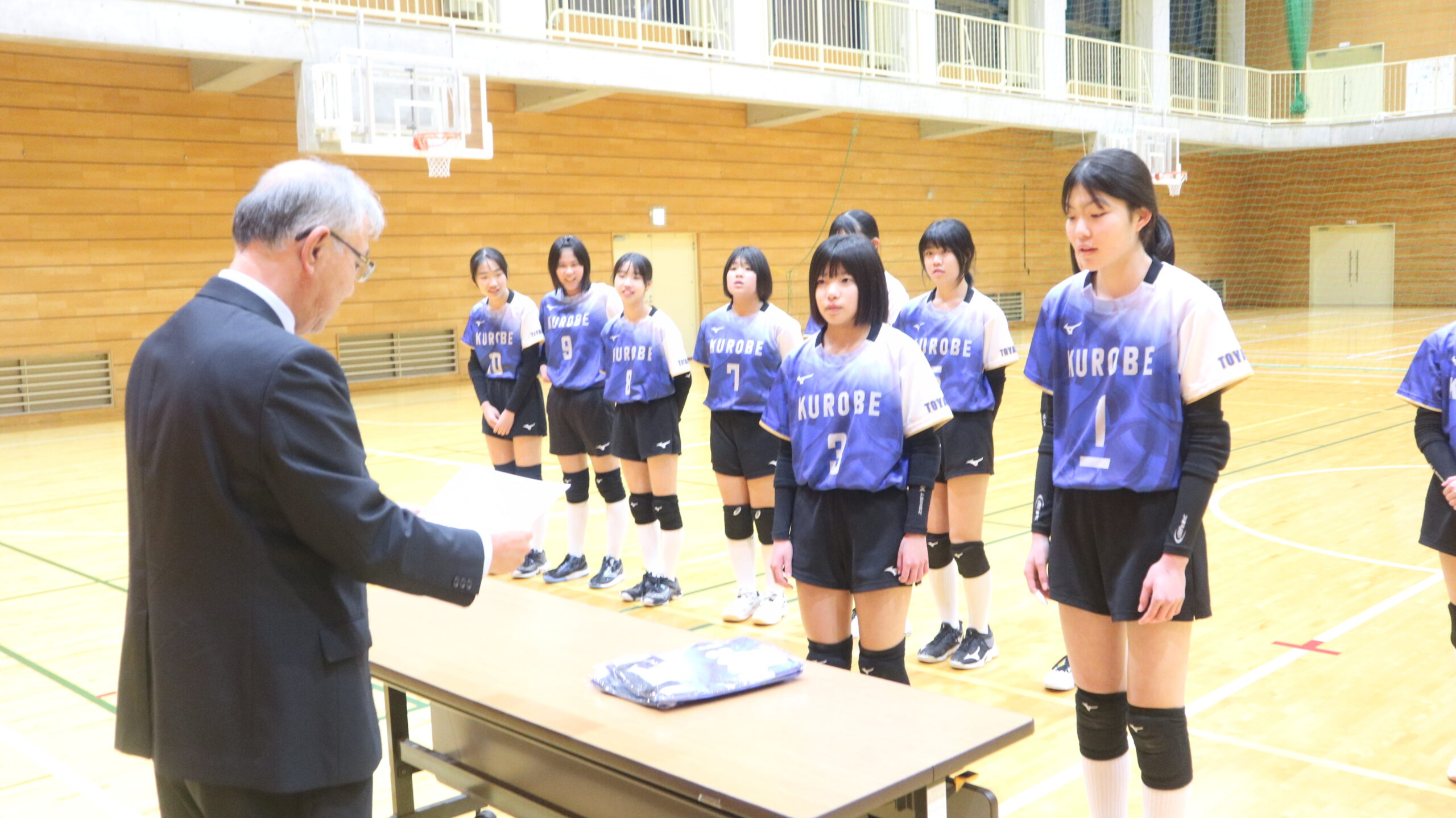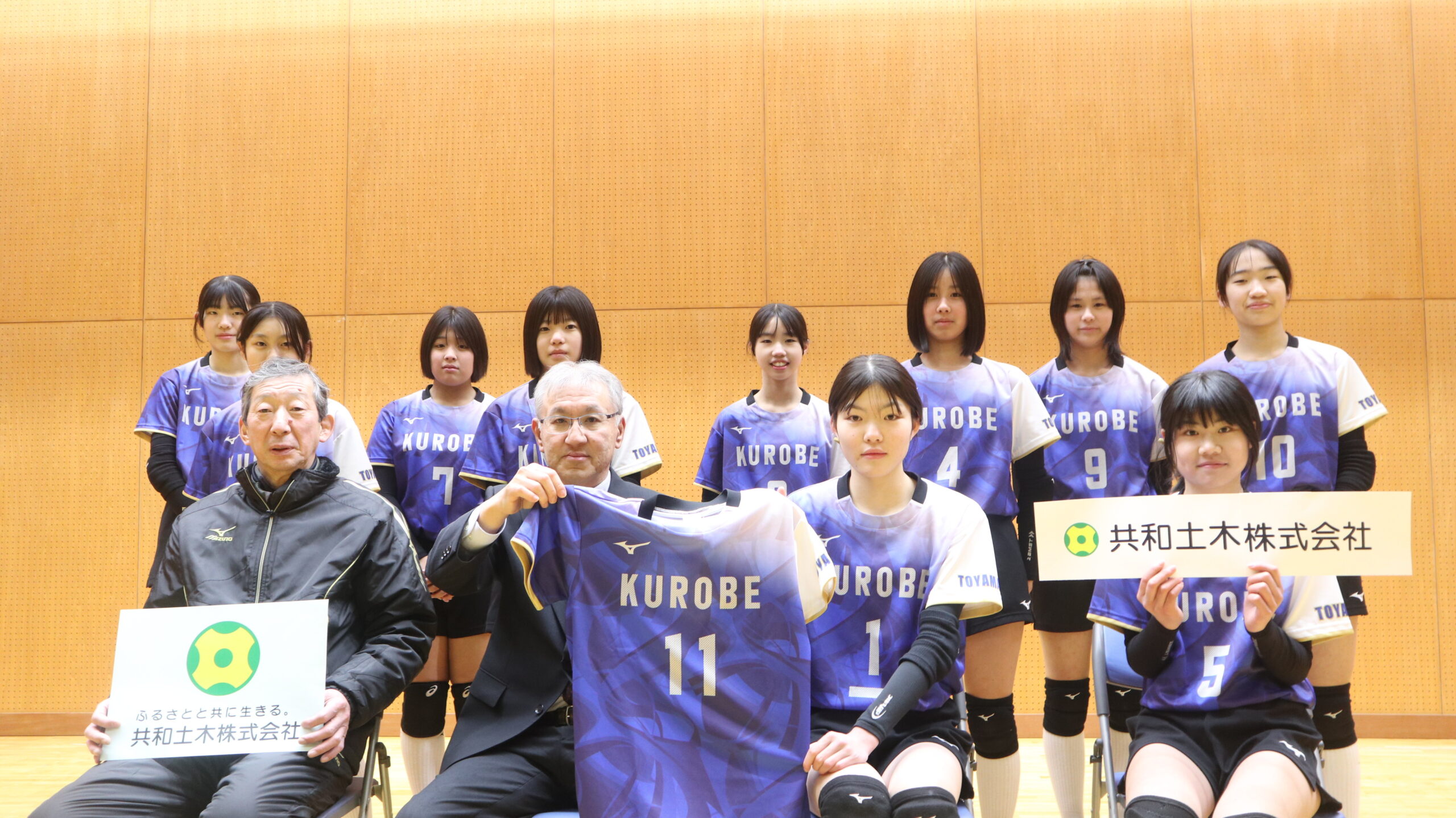 「KUROBE VC(バレーボール)」へ試合用ユニフォームを提供しました! 2026年1月23日 弊社が登録している「富山県部活動応援企業」の制度を活用して、黒部市地域クラブ活動として 市内の明峰中学校・清明中学校の生徒が主に活動している「KUROBE VC(バレーボール)」の 皆さんへ試合用ユニフォームを提供させていただき、先日贈呈式を行っていただきました。 これからも地域に根ざした企業として、未来を担う子どもたちの挑戦を応援し続けていきます! ※写真は、生徒及び保護者の皆さんに事前に許可をいただいたうえで掲載しています。 前の記事令和7年度富山県建設優良工事表彰(農林水産部長賞)受賞!! お知らせ一覧へ