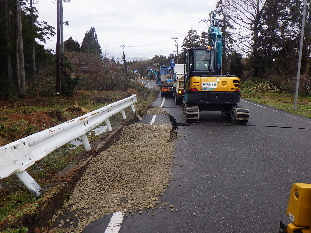 富山県建設業協会 入善支部より珠洲市へ派遣され、被災した道路を補修してきました。