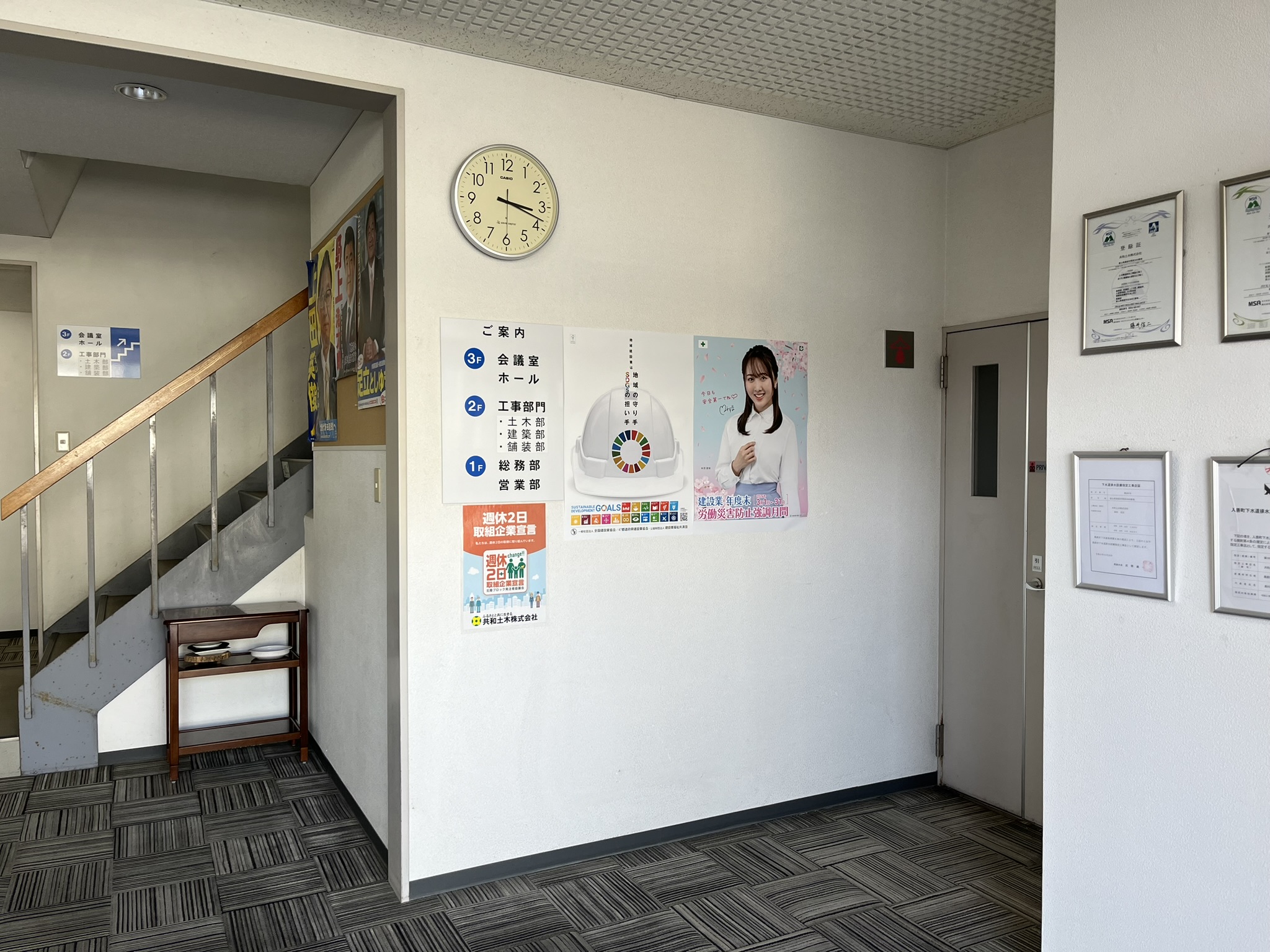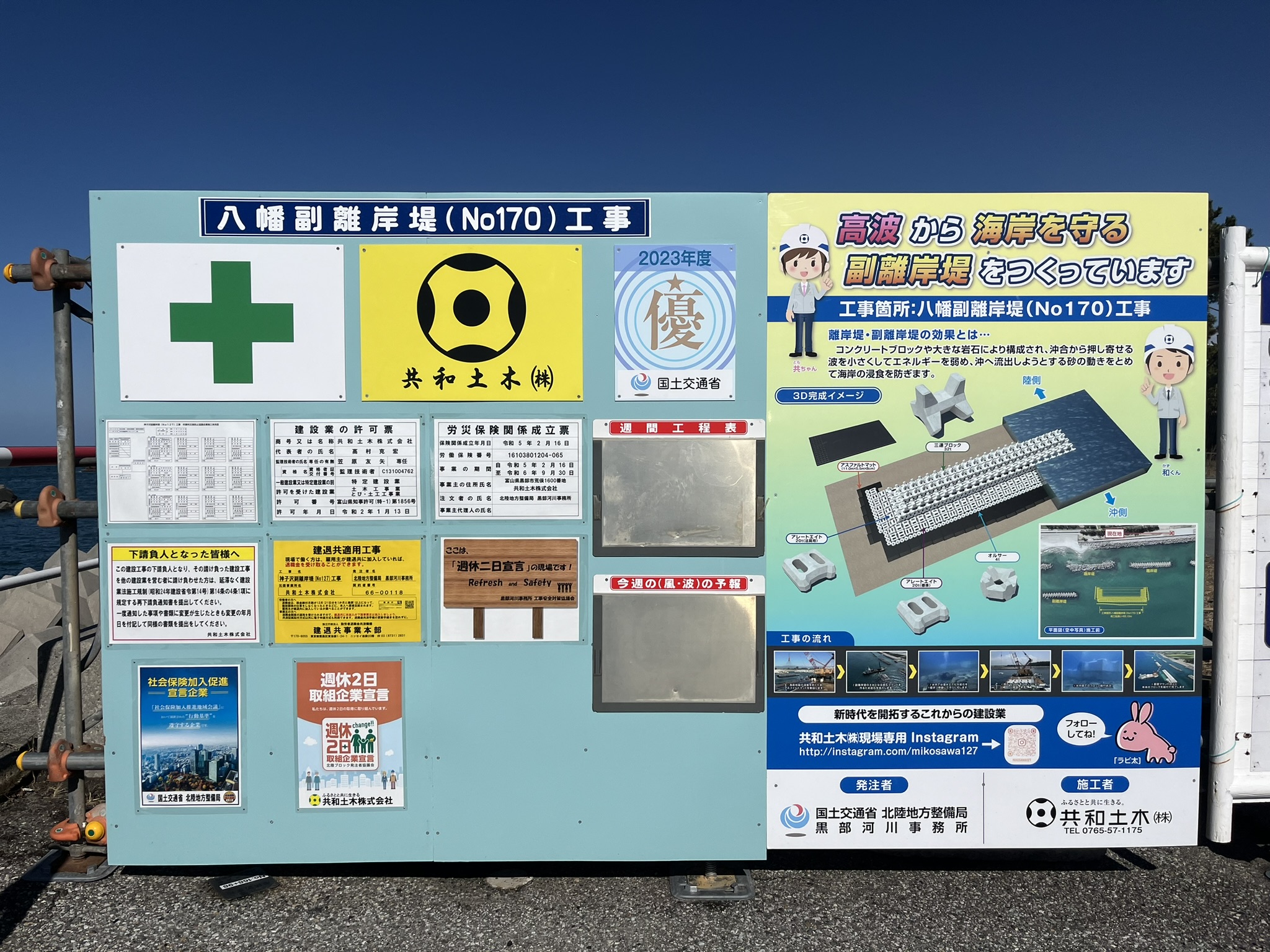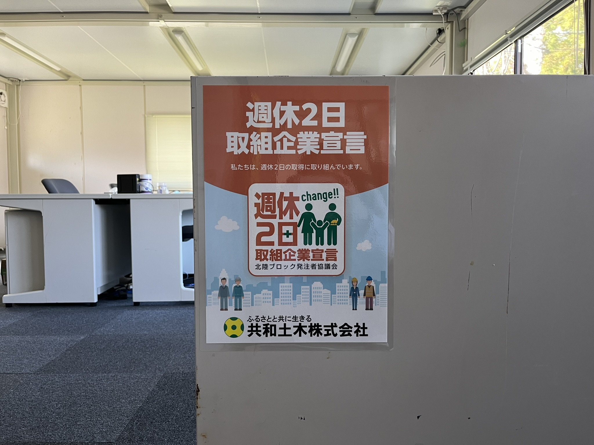 週休2日取組企業宣言! 2024年4月1日 共和土木株式会社は、従業員が「週休2日」を取得でき、働きやすい職場環境の整備に 取り組んでいることを『宣言』します。 【掲示状況】 ・本社内 ・現場事務所 ・現場掲示板 前の記事能登半島地震 災害派遣活動報告(動画)次の記事「ハイパーメディカル(AIG保険)」を導入しました! お知らせ一覧へ
